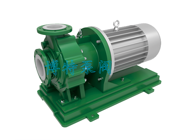工作原理:氟塑料磁力泵由泵、磁力傳動(dòng)器、電動(dòng)機(jī)三部分組成。關(guān)鍵部件磁力傳動(dòng)器由外磁轉(zhuǎn)子、內(nèi)磁轉(zhuǎn)子及不導(dǎo)磁的隔離套組成。當(dāng)電動(dòng)機(jī)帶動(dòng)外磁轉(zhuǎn)子旋轉(zhuǎn)時(shí),磁場(chǎng)能穿透空氣隙和非磁性物質(zhì),帶動(dòng)與葉輪相連的內(nèi)磁轉(zhuǎn)子作同步旋轉(zhuǎn),實(shí)現(xiàn)動(dòng)力的無(wú)接觸傳遞,將動(dòng)密封轉(zhuǎn)化為靜密封。由于泵軸、內(nèi)磁轉(zhuǎn)子被泵體、隔離套完全封閉,從而徹底解決了“跑......